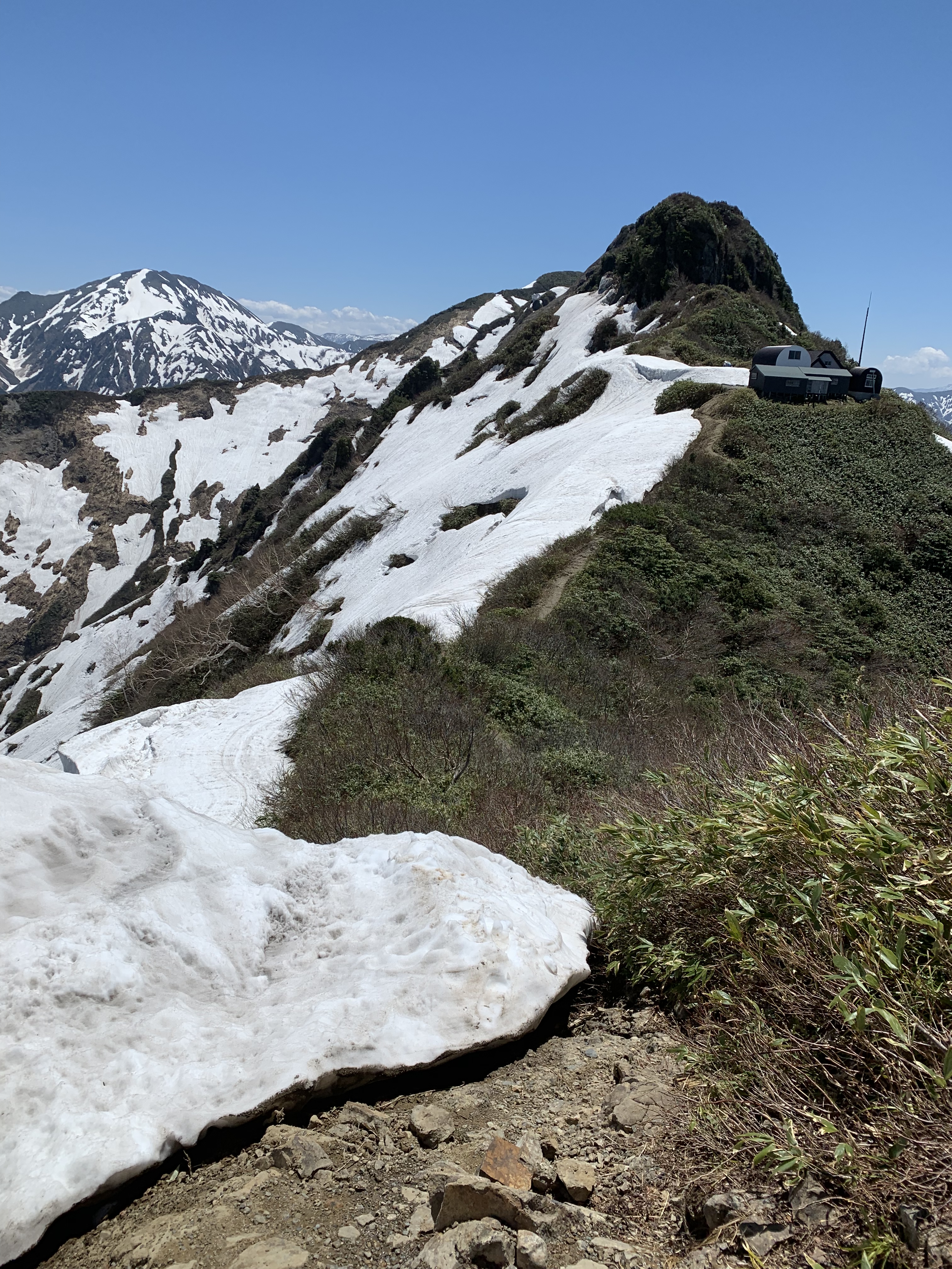 雪渓が沢山残っていてトラバースには最善の注意をはらい、苦労して登った先に見えるのは美しい景色でした。